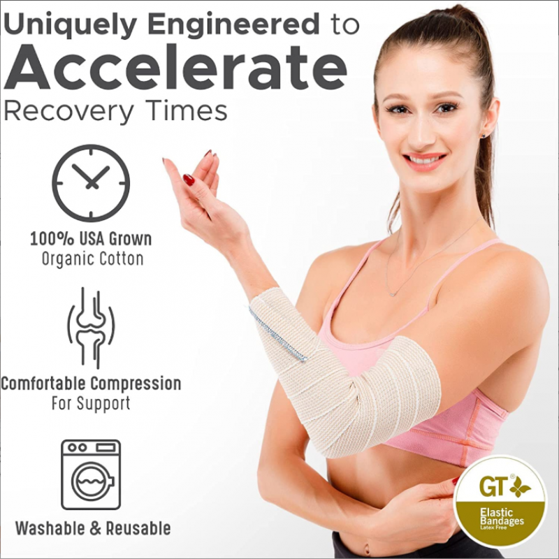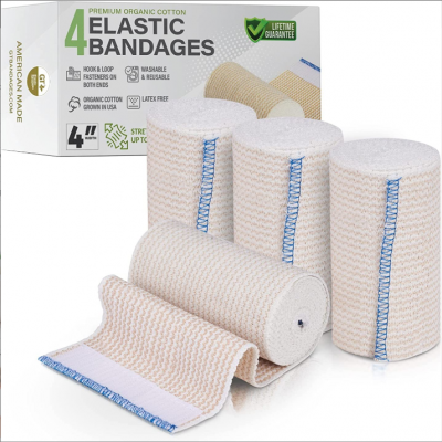 Envoltura de vendaje elástico premium hecha de algodón orgánico cultivado en EE. UU.-Sujetadores de gancho y bucle en ambos extremos-